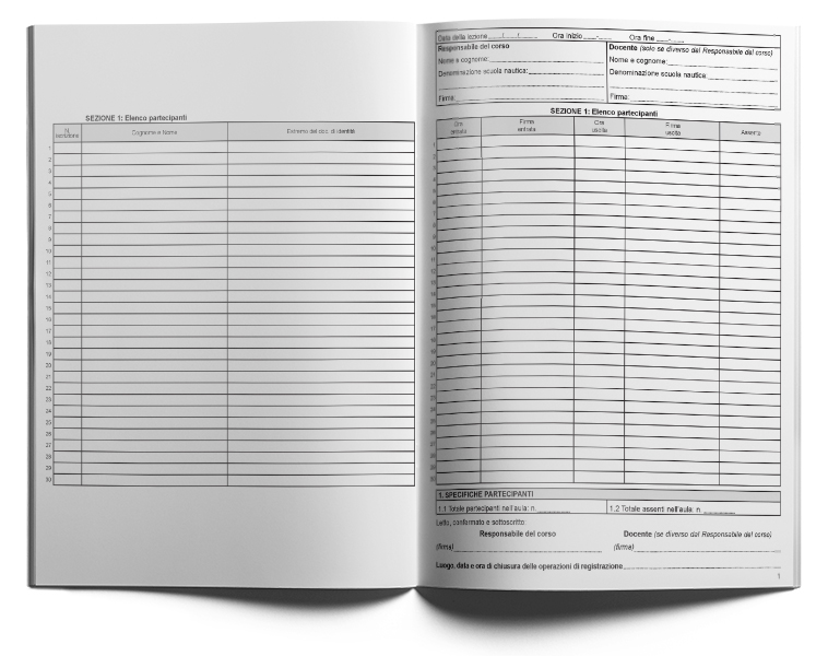 Il Registro del corso teorico Nautica D1 è utile per segnare le presenze durante il corso teorico per patenti nautiche di categoria D, tipo D1.