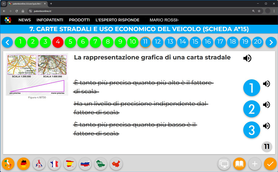 Il quiz faceva parte della lezione n. 7 (Carte stradali e uso economico del veicolo) del corso KB.