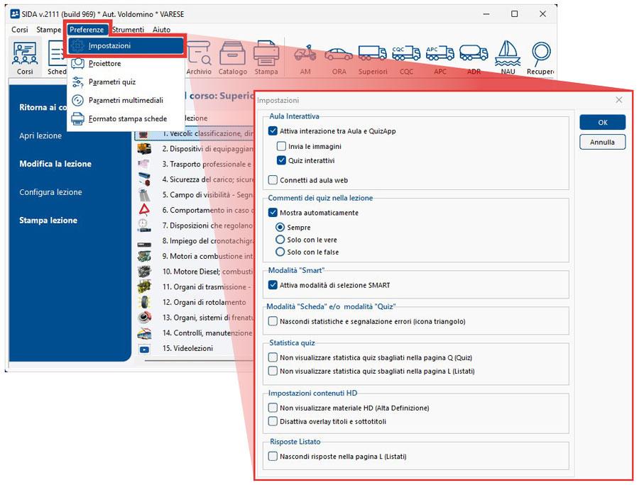 Abbiamo aggiornato, integrato e migliorato tutte le aule dei corsi delle patenti superiori con un abbinamento più pertinente delle immagini ai quiz e aggiornando le immagini più datate. Abbiamo integrato le immagini inserite nelle varie aule per coordinarle con le nuove videolezioni delle categorie superiori.